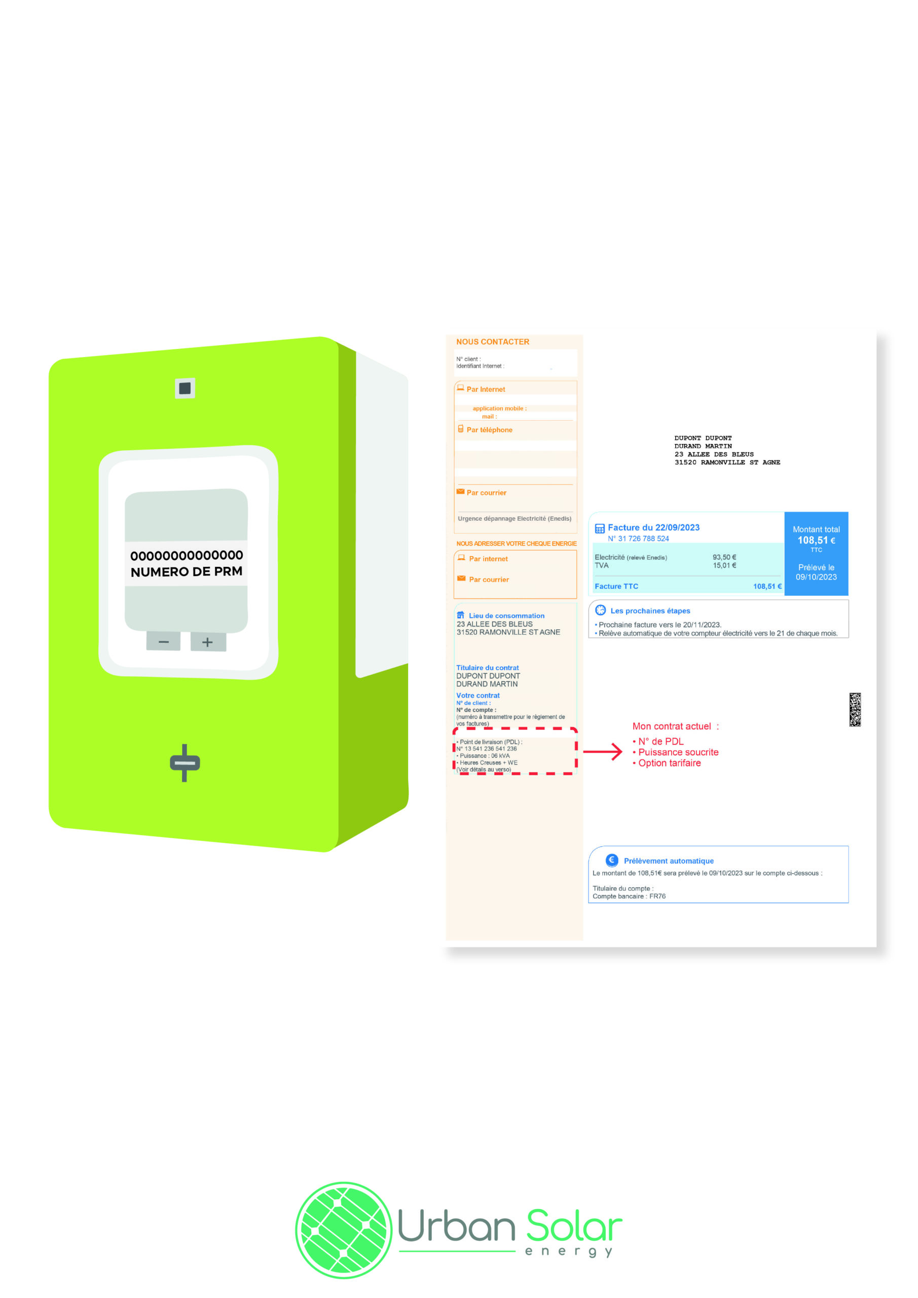 Pensez à vous munir des documents suivants : facture d’électricité, non opposition de la mairie, consuel, plan de masse, plan de situation, photo de votre compteur de consommation et d’un KBIS si vous êtes professionnel.